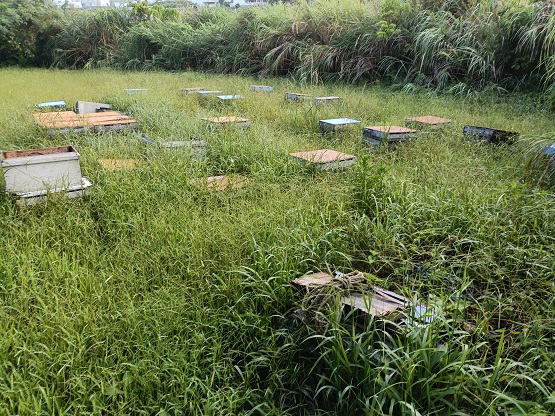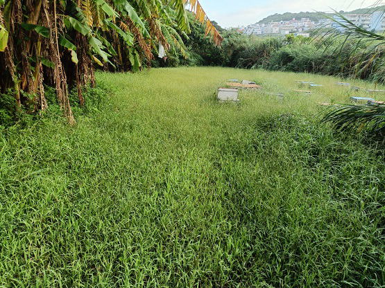 7月30日(水) ![]() ネコの給餌 餌スカスカ 餓死寸前 マンゴーの内検給餌 餌スカスカ 餓死寸前 アーチの内検新王確認 給餌 台風接近による雨続きでエサ不足が危険度マックス マンゴーの作業を一時中断して給餌をする 7月の一か月で雑草がかなり伸びた |