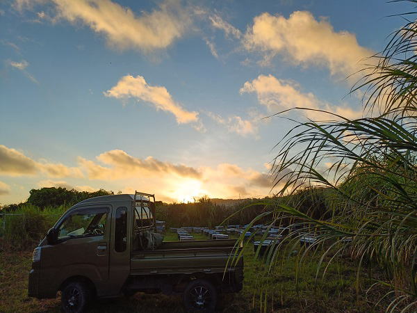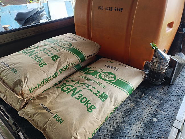 11月17日(月) ![]() 場所:南城市玉城前川 目視で高さ80p、幅50p 午前11時、多数のコガタスズメバチの出入り確認 ![]() 貯蜜少なめ群にビート給餌 ビート4体120キロで200Lの割合 ![]() 11月中旬、サシグサの開花3割ほど 貯蜜減少で給餌が必要群多数 12月採蜜を視野に入れながら少量給餌を進めていく |