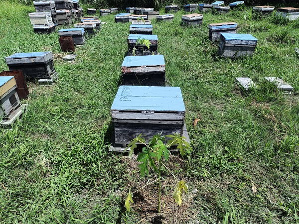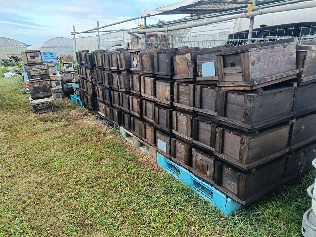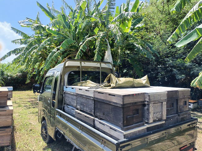 12月23日(火) ![]() 採蜜をしました。 10/23西・アーチ 12/19ネコ・バナナ・階段・海・マンゴー 12/23アーチ・西 年々採蜜時期が後ろにずれてきています。 ![]() 12/6開始、マンゴー花粉交配用ミツバチ用の巣箱に防腐剤を塗りました。 約2か月間、乾燥させ臭いを飛ばしていきます。 |