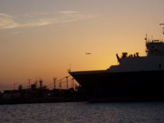 PM19:00 夕日をバックに大型船の後ろを飛行機が飛んでいくの図。 この写真を撮った10分後、市場へドラゴンフルーツを出荷 思いっきり現実に引き戻されるのであった・・(TT) 明日からまた仕事ガンバロ! |
